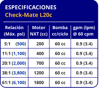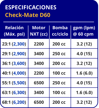 *Todas las relaciones están disponibles solamente con platos de 55 galones (200 litros)