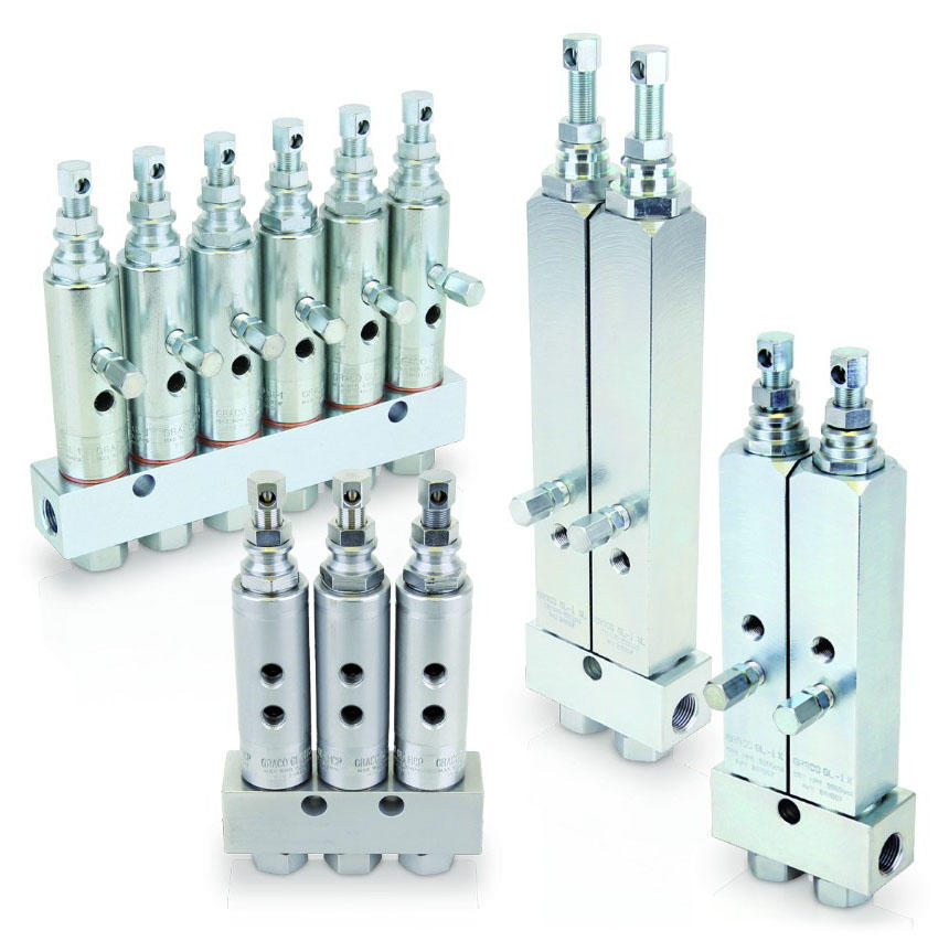 Conozca todas los inyectores y distribuidores de pistón de Graco que se usan en